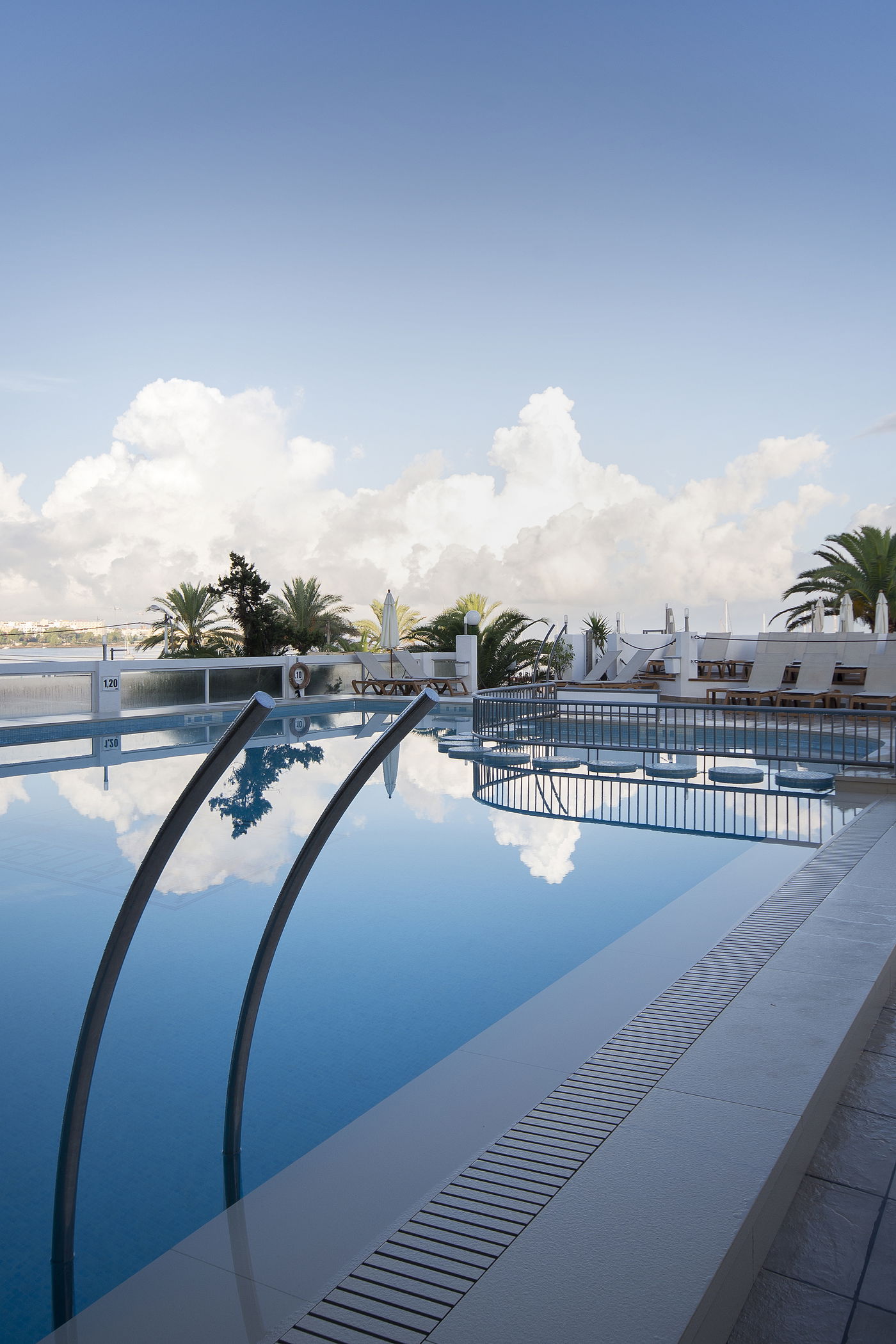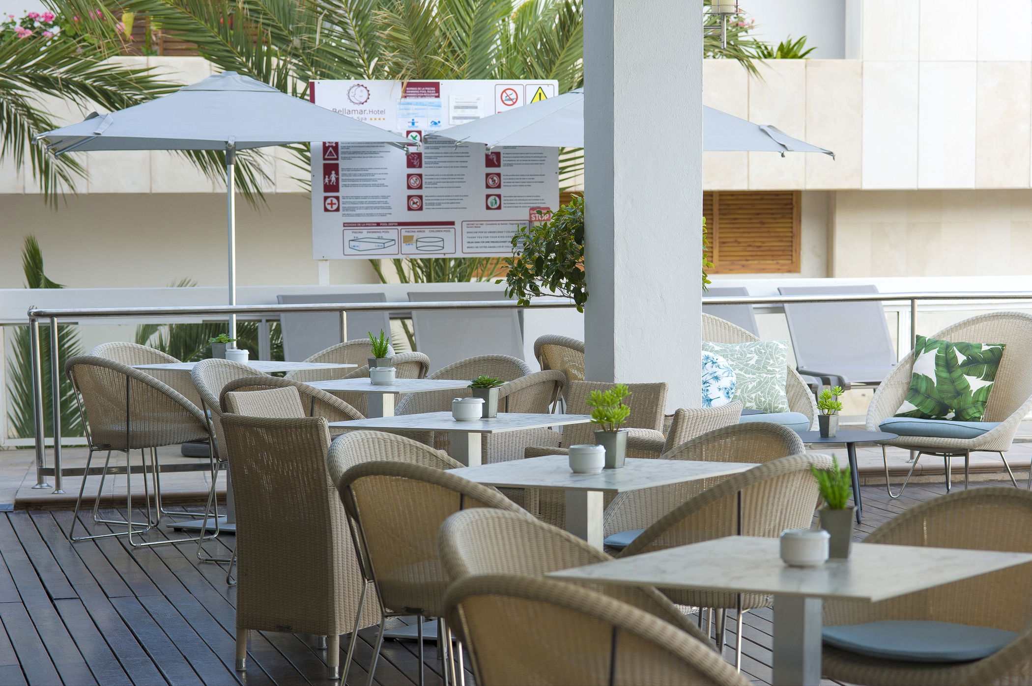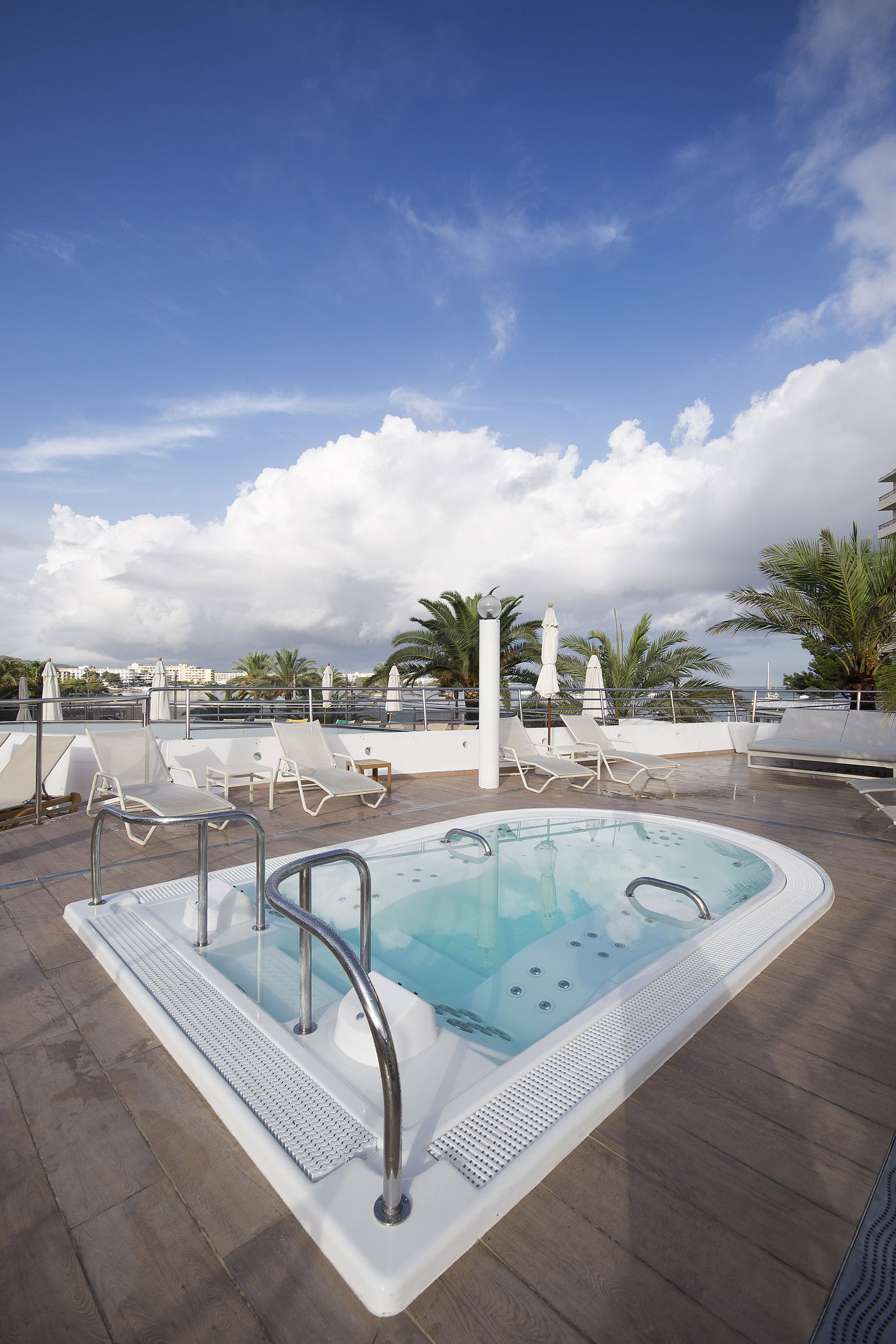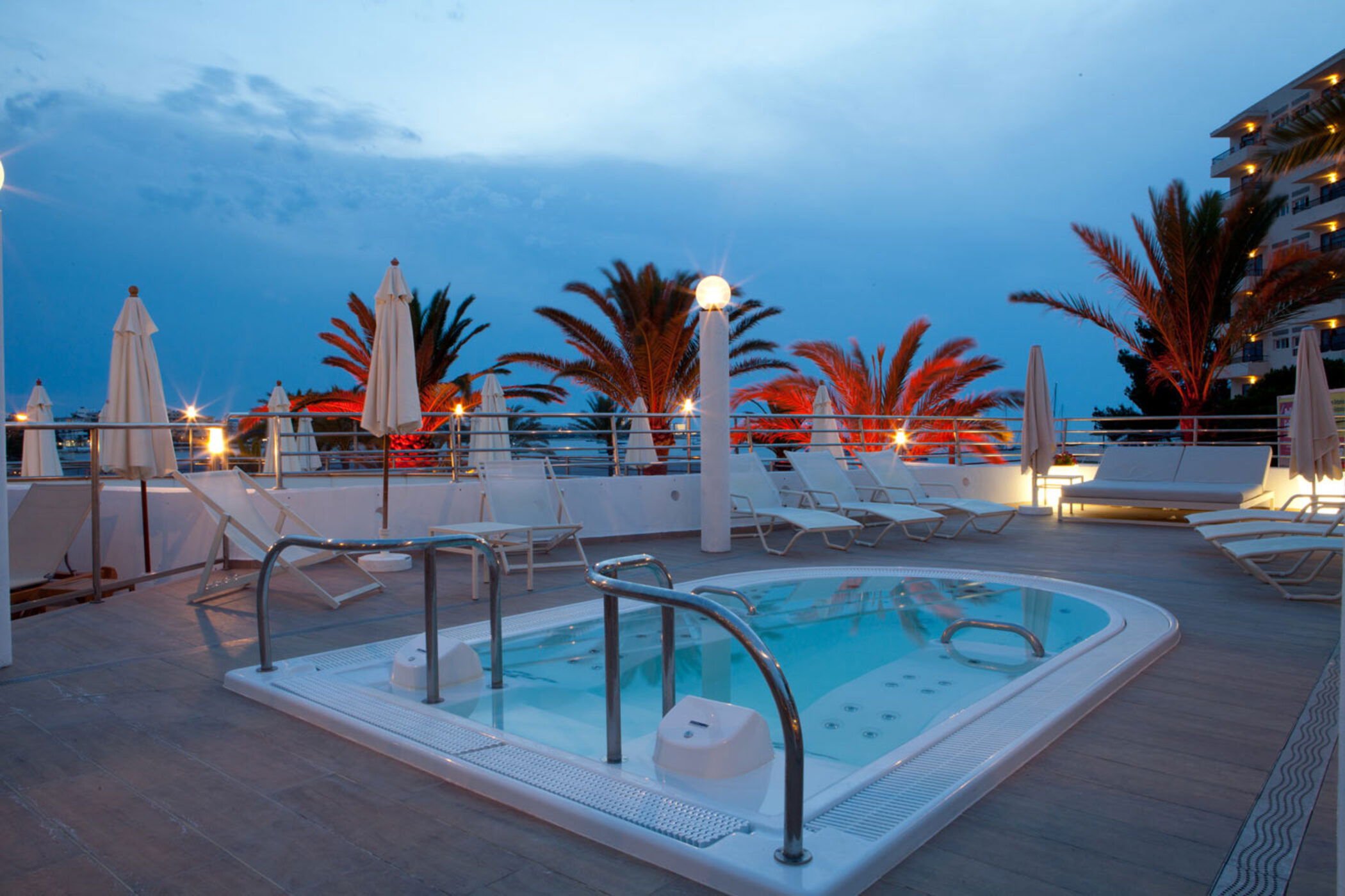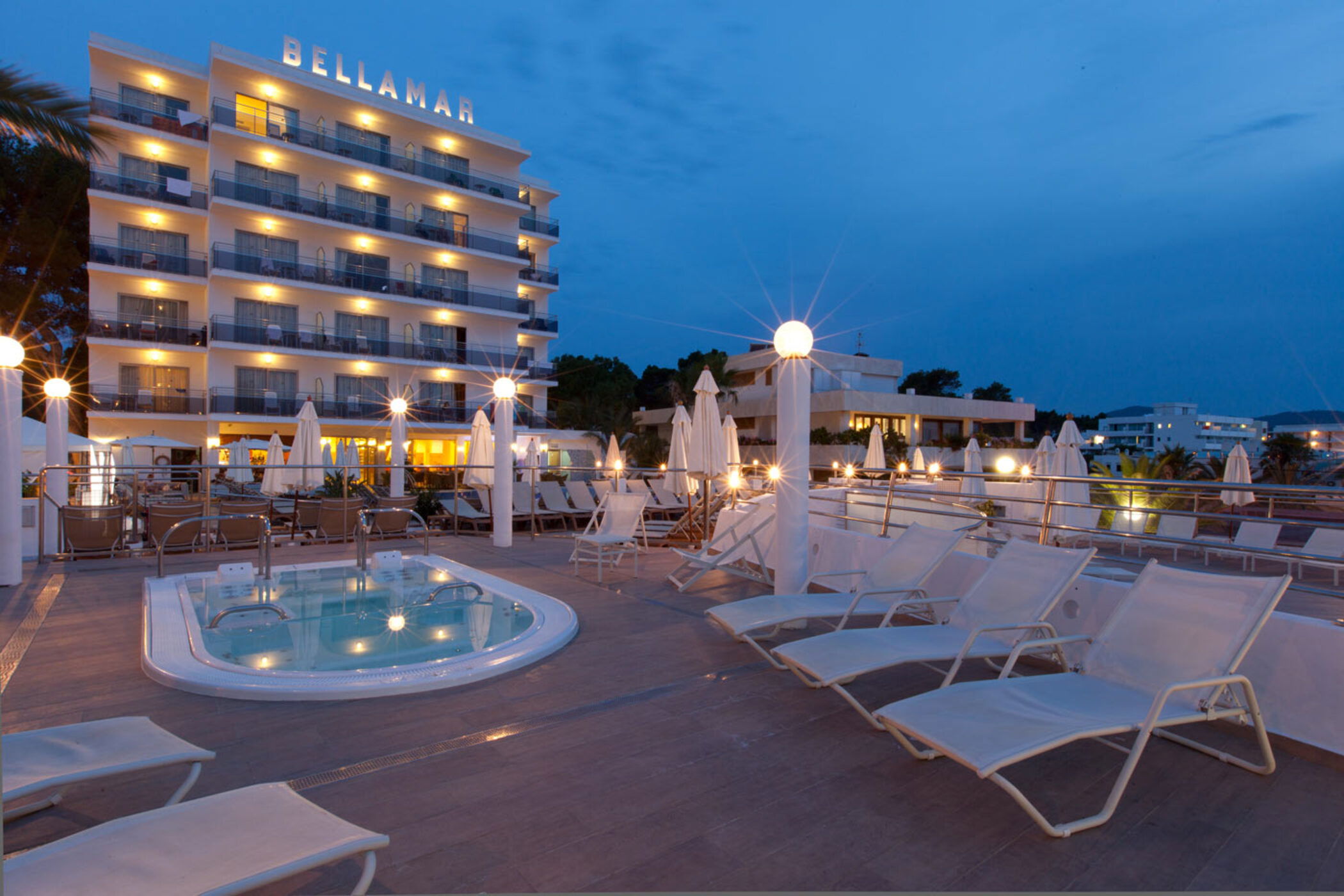 Sumérgete en la impresionante piscina exterior del Bellamar, rodeada de un amplio solárium con cómodas hamacas y sombrillas donde el tiempo parece detenerse. Disfruta del burbujeante jacuzzi al aire libre mientras sientes la brisa marina o contemplas el cielo transformándose al atardecer. Y si lo que buscas es un momento de puro relax, nuestro spa te espera con piscina climatizada, chorros de masaje, sauna, baño de vapor y un circuito pensado para revitalizar cuerpo y mente.