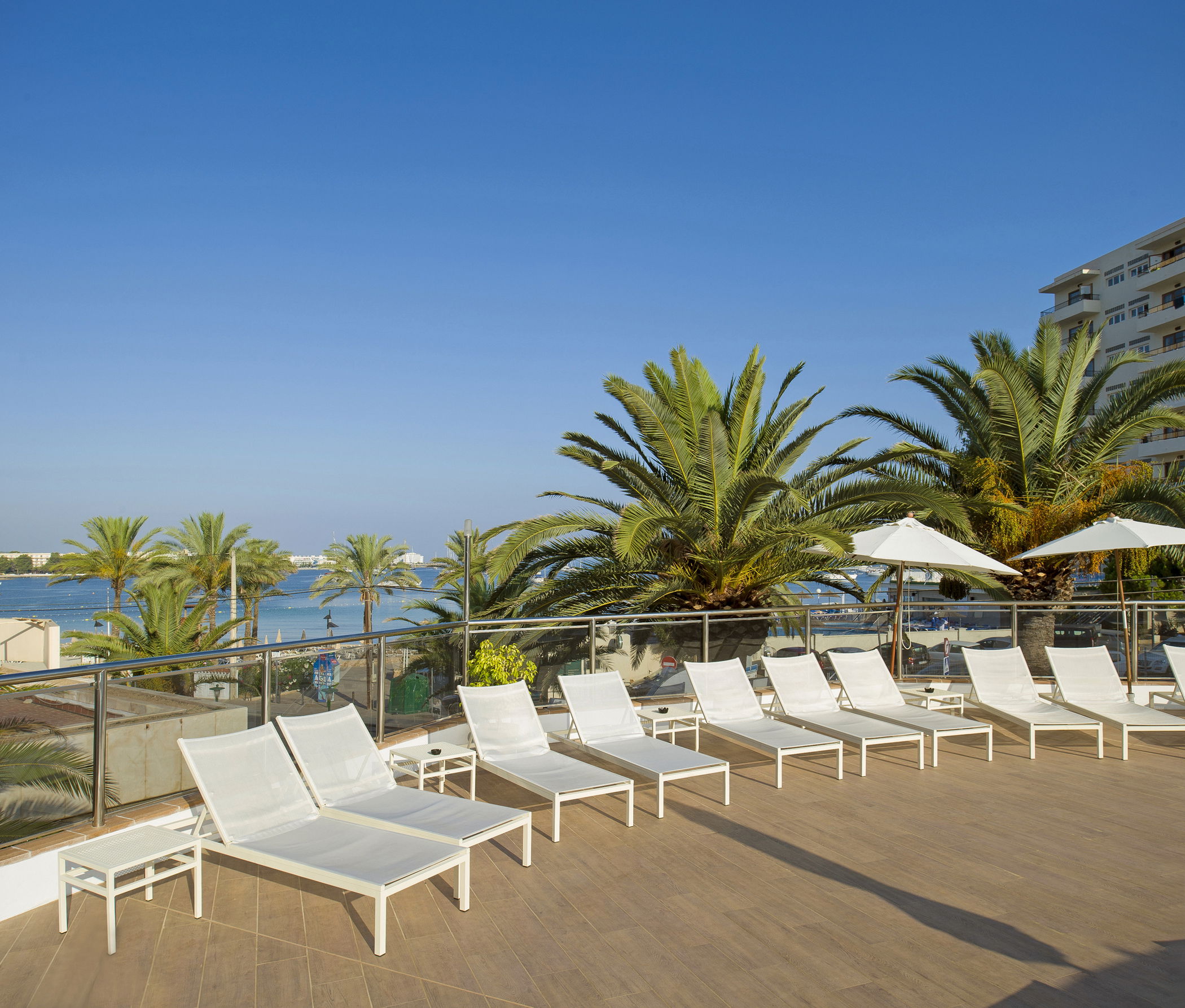 Nuestra ubicación, frente a la mágica Bahía de San Antonio, regala cada día postales únicas: cielos teñidos de tonos dorados, naranjas y rosados que podrás contemplar desde la terraza o, mejor aún, con un refrescante cóctel en la mano junto a la piscina.